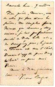 Victor HUGO. [AF] L.A.S., Hauteville House 9 août [1864], à Henry Lecomte à Paris ; 1 page in-8, enveloppe. Belle lettre à un jeune poète. « Votre poésie, Monsieur, est de celles qui font aimer la poësie. Vos strophes font mieux que...