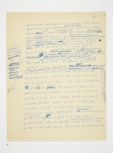 Manuscrit à l’encre bleue, avec de très nombreuses ratures et corrections, additions et suppressions, sous une chemise avec le titre, et une dédicace (noms effacés) : « cette Marthe, cette Marie, nous les connaissons bien »…