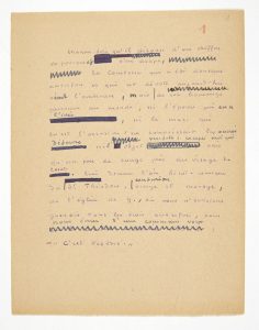 * [2e partie. Chaminadour]. 26 chemises et des ff. volants [p. 1-15, et 79-80] (138 pages). Royauté occulte. Trinité profane. Madame Quinquaud [Pimpaneau]. Cunégonde Rouchon. Fosse septique. Iniquités. Ressentiments. Le potard perverti. La fiancée d’Henri Guillot. La Messe de l’Antoinette Chirat. Le Cul de l’Annette Paupe. Couac ! Viols, Boutelat, Philomène Christou et Cie. Louise Vinatier. Madeleine. M. Gandolin et M. Petit. Enterrement. La couverture (impr.). La Marieuse (impr. corrigé). La Fille du Père Naturel (dact. corr.). Les deux bossues. Le Professeur d’amour. Haine filiale (impr. corr.). Balayeurs (impr. corr.). La femme du charbonnier (dact. corr.).