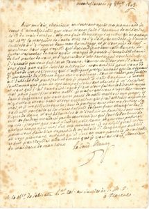 La lettre de Sobirats lui a appris que la marquise de Sarte ne l’avait point visité lors de son dernier passage : « Je l’aurais invitée à s’y reposer dans mon hermitage, et je vous prie de lui exprimer tous mes regrets qui deviendront dans votre bouche de justes reproches de vous avoir manqué de parole. J’aurois été charmé de lui parler de vous, et d’apprendre d’elle tout ce qui vous intéresse. J’ignorais que vous fussiez en Toscane. Vous ne me dites pas si vous y etes fixé par votre service militaire. Mon amitié pour vous se plaint de vos réticences […] Je crains que vous n’ayez trop raison dans le jugement que vous avez porté de notre malheureux pays : il me restoit encore trois nièces orphelines que j’ai attirées auprès de moi, et je me félicite tous les jours de partager avec elles ma fortune. La conduite parfaite et les rares talents de leur frere chanoine de St Pierre de Rome m’ont déterminé à m’établir en famille dans mon exil. Le fardeau est adouci par des consolations qui font le bonheur de ma vie »…