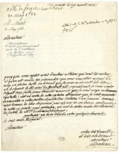 Victor de Riquetti, marquis de MIRABEAU (1715-1789) « L’Ami des hommes », économiste et agronome, père du grand orateur. L.A.S., Paris 29 avril 1781, à Joly de Fleury ; 1 page in-4. « Quoyque vous ayiés assés d’autres affaires qui...