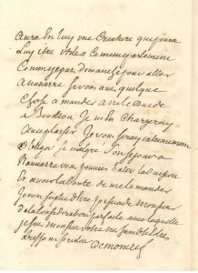 de M. Montallier de Grissart, demandeur d’un droit de prélation : « M. le duc de Bouillon a qui j’ay eu l’honneur d’en parler lorsquil montoit en carosse pour aller a Gaillon […] a eu la bonté de me dire que je pouvois compter sur luy mais qu’il falloit vous en parler aussy »…Château des Ormes avril 1757. « Il y a quelques années que j’examinai par votre ordre un manuscrit intitulé L’Arcadie moderne [de l’abbé Labaume-Desdossat] : l’auteur […] est tres circonspect dans ses jugemens les plus sévères, et prodigue de loüanges dans tous les autres. Je ne trouvai guère de retranchemens a y faire que les éloges qu’il m’avoir donnés. J’ai cru que cet ouvrage etoit resté inconnu, l’auteur, longtems apres que je leus approuvé m’ayant ecrit qu’il n’avoit pu s’arranger avec les libraires et m’ayant prié de solliciter le Roi de Pologne [Stanislas] pour que Sa Majesté voulut bien le faire imprimer, ce que je ne fis pas ». Il apprend par L’Année littéraire, qui en cite un extrait, qu’il a été publié : « je suis bien persuadé que ce morceau n’est point dans le manuscrit que j’ai approuvé ou du moins y a été ajouté depuis la date de mon approbation »…