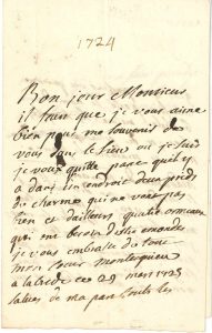 Monsieur il faut que je vous aime bien pour me souvenir de vous dans le lieu ou je suis. Je vous quitte parce qu’il y a dans un endroit deux pieds de charme qui ne vont pas bien et dailleurs quatre ormeaux qui ont besoin d’estre emondés. Je vous embrasse de tout mon cœur »… Il le charge de saluer de sa part « touts les gens qui portent ou qui ont autrefois porté le nom de Berthelot »…. Puis il ajoute : « Madame de Maran na pu se resoudre a me dire un seul mot de vous je lay pourtant mise bien des fois sur les voyes. Jay porté votre santé au procureur general qui na pas songé a me faire raison. Je ne vois d’amis solide icy que Maran qui ma fait prendre un rumatisme en particulier a sa fenestre pour me parler de vous ».