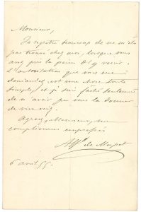 je suis fâché seulement de n’avoir pu vous la donner de vive voix ». – Il est désolé d’arriver trop tard : « Ce ne sera qu’à trois heures et demie – à la bibliothèque Mazarine ».