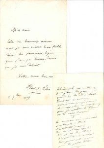 11 septembre 1839. Elle informe des amis de sa santé : « Cela va beaucoup mieux mais je suis encore bien faible. Voici les premières lignes que j’ai pu tracer depuis que je suis debout. Votre amie bien sincère, Rachel Félix ». –À son ami Jolivet. Elle l’invite à lui rendre une petite visite, car elle n’a pas quitté son lit depuis 5 jours. Mme Bonnaire lui a remis une lettre de « notre commissaire royal que je voudrais vous montrer. Je n’ai point entendu parler de la famille Samson depuis mon indisposition, je vois d’ailleurs que ma santé les intéresse fort peu. Pourquoi les instruirai-je de mes nouveaux projets d’engagements »…