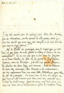 parent de vostre goutte »… Le Président de Lamoignon « n’a que faire de vous, quand il m’honorera de ses commandements. Je ne crois pas que ce soit dans les Gazettes ou on doive chercher les faits de la guerre du Roy Charles Gustave contre la Pologne. C’est une trop grande fatigue de chercher des faits coupez par morceaux. Mais on trouvera la suite assez exactement, dans Brower et les continuateurs, qui sont apparemment dans une aussi belle bibliotheque que celle de Mr de Lamoignon. On trouve aussi la suite tres abregée des faits dans un assez mauvais petit livre, mais assez commode de l’Hist. du siecle courant. Apres cela donnez moy huit jours, car tous mes livres sont en desordre, parce qu’on les transporte dans leur nouvel edifice, je vous enverray sur cela un mémoire plus exact »…