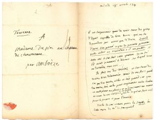 On joint une L.A.S. à M. Herault, 30 novembre 1729, annonçant l’envoi d’un « petit ouvrage […] c’est un mémoire propre a doner a examiner a un ministre & non un discours a rendre publiq. Je ny ai pas meme mis la derniere main. J’atendois encore quelques eclaircissemens et quelques objections »… (1 page in-8).