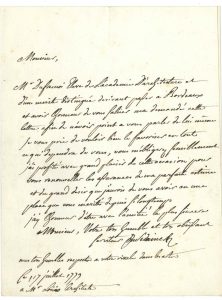 élève de l’Académie d’architecture…. 15 mai 1769, bon pour deux places à la Comédie Italienne. 26 mars 1778, copie certifiée conforme du mémoire lu le 9 mars 1778 par M. Peyre le jeune à l’Académie d’architecture [dont Sedaine était le secrétaire perpétuel], relatif aux architectes pensionnaires de Rome. Paris 25 novembre 1790, quittance d’arrérages de rentes.