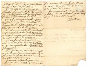 n’avais point entendu parler de Themidore, vous m’inspirez la curiosité de le lire. […] Je n’ai point encore lu la Henriade travestie mais on m’en dit a peu près ce que vous m’en dites. J’ai lu les deux premiers tomes du père Massillon et j’en suis très content, à quelques exceptions près – il y aurait eu bien des corrections à y faire et qu’en aurait faites sans doute un éditeur d’un goût aussi sûr que le père Bretonneau, par exemple »… (la fin manque). –18 juillet 1763, à l’abbé Arnaud. Il a lu l’article de la Gazette littéraire de l’Europe annonçant la mort du chevalier de Saint-Georges : « Il étoit mon compatriote, mon parent et mon ami. Je m’intéresse donc à sa mémoire, et en consequence, voici quelques observations dont vous ferez l’usage que vous jugerez à propos »… Suit une liste de sept rectifications, dont la plus importante est celle de son nom de famille…