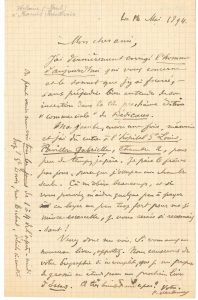 dans la très prochaine édition “commerciale” de Dédicaces ». Il a dû entrer à l’Hôpital Saint-Louis à cause de sa jambe qui continue à le contrarier, « Pavillon Gabrielle, Chambre 2, pour peu de temps j’espère ». Il paie la chambre deux sous par jour et prie son ami de l’aider un peu « à payer ce loyer un peu trop fort pour ma mince escarcelle, je vous serais si reconnaissant ! Venez donc me voir. Si vous avez un nouveau livre, apportez. Nous causerons de votre biographie si incomplète [pour Les Hommes d’aujourd’hui], que je me propose de grossir en étude pour un prochain livre d’Essais »… Il ajoute en marge l’adresse de l’hôpital et les horaires des visites…