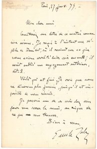 « Mon cher ami, considérez ma lettre de ce matin comme non avenue. Je reçois à l’instant une dépêche de Daudet, où il revient sur ce que nous avions arrêté hier soir ensemble ; il avait oublié un engagement antérieur, dit-il. Voilà qui est fini. Je crois que nous ne dînerons plus jamais, puisqu’il est impossible de nous réunir. Je passerai un de ces soirs chez vous pour vous serrer la main, au risque de ne pas vous trouver »…