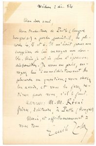 Émile ZOLA. L.A.S., Médan 2 décembre 1884, [à son éditeur Georges Charpentier] ; 1 page in-8 (légère jaunissure). Son « traducteur de Pesth (langue hongroise) » a perdu les placards 4, 5 et 6 : « Il m’écrit pour me supplier de lui...