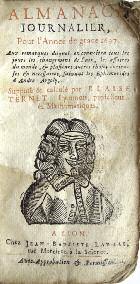 [Almanach]. Ternet (Blaise). Alma-nach Journalier pour l’Année de grâce 1697. Aux remarques duquel on connoîtra tous les jours les changemens ds l’air, les affaires du monde, & plusieurs autres choses curieuses & necessaires, suivant les