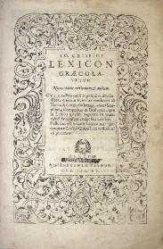 Crespin (Jean). Lexicon Græcolatinum. Nunc recens res-titutum & auctum. Cui accessere noui & perutiles duo Indices, quo-rum Prior ex methodo ab Henr. Steph. observata, voces Simplices, Compositas & Deriuitas, quæ in Lexico sparsim leguntur in vnum