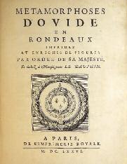 [Benserade]. Ovide. Méta-morphoses d'Ovide en Rondeaux impri-mez et enrichis de Figures par ordre de Sa Majesté et dediez à Monseigneur Le Dauphin. Paris, Imprimerie Royale, 1676. Grand in-4, reliure veau fauve, dos à 5 nerfs orné de fleurons