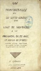 [Pascal (Blaise)]. Les Provinciales ou Les Lettres Ecrites par Louis de Montalte à un Provincial de ses amis… Sixième Edition dans laquelle on aajouté la lettre d’un avocat au Parle-ment… Cologne, Nicolas Schoute, 1666. 2 volumes in-8, reliure