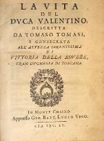 Tomasi (Tommaso). La Vita del Duca Valentino, descritta da Tomaso Tomasi, e consecrata all’ altezza serenissima di Vittoria della Rovere, gran Duchessa di Toscana. Monte Chiaro, Gio. Bapt. Lucio Vero, 1655. Petit in-4, reliure xixe s. demi-chagrin