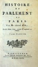 [Voltaire]. Histoire du Parlement de Paris par Mr l'Abbé Big… Seconde édition revue, corrigée & augmentée par l'Auteur. Amster-dam (Lausanne ?), Jean Jaques du Fay, 1769. 2 tomes en un volume in-8, reliure basane granitée, dos lisse orné, pièce