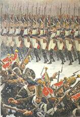 Loir (Maurice). Au Drapeau ! Récits militaires extraits des Mémoires de Bussière et Legouis, du Comte de Ségur, du Maréchal Masséna, … Avec une préface par G. Duruy et un tableau historique des régiments français. Paris, Hachette, 1897. In-4,