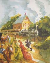 Alain-Fournier. Le Grand Meaulnes. 74 aquarelles originales de Renny Bossu. Paris, Nouvelle Librairie de France, Labat éditeur, 1993. In-4, reliure éditeur cuir vert, dos à 4 nerfs, plat orné d’un dessin polychrome, tête dorée, étui bordé.
