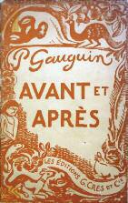 Gauguin (Paul). Avant et Après. Avec les 27 dessins du manuscrit original. Paris, Crès, 1923. In-8, broché. Couverture illustrée d’un bois gravé de Gauguin. Dos recollé, couv. en partie détachée, traces de scotch. 241-(1) pp. et 27 planches