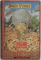 Verne (Jules). L’Ile à Hélice. 80 illustrations par L. Benett dont 12 grandes gravures en chromotypographie, 1 carte en couleurs et 2 cartes en noir. Paris, Hetzel, s. d. (1895). Grand in-8, cartonnage éditeur polychrome percaline rouge au portrait
