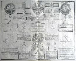 x 76 cm à toutes marges) représentant le Globe céleste, le Globe terrestre, la Sphère de Coper-nic… Trace de mouillure claire, marge renforcée en pied. • Systême de Copernic, ou Abrégé de l’Astronomie. Fin xviiie s. Grande planche à double page (54 x 76 cm à toutes marges) représen-tant les planètes et des textes encadrés (Notions, Termes).