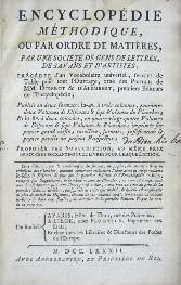 [Encyclopédie]. Diderot et D’alembert. Encyclopédie Métho-dique ou par Ordre de Matières, par une Société de gens de lettres, de savans et d’ar-tistes… Publiée en deux formats : in-4° à trois colonnes… Et in-8°, à deux colonnes, en 84