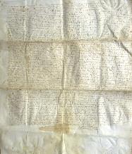 [Dordogne]. Acte Notarié. Périgueux, 1571-1576. Grand parchemin (71,5 x 60 cm) manus-crit. Pliures un peu frottées. Contract et quittances passé entre les familles Vidal et Lortige (?).