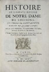 [Soissons]. Germain (Dom Michel). Histoire de l’Abbaye Royale de Notre-Dame de Soissons, de l’Ordre de Saint Benoit. Divisée en quatre Livres, avec les Preuves, et plusieurs Titres, tirez des Archives de cette Abbaye. Paris, Coignard, 1675. In-4,