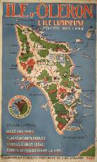 [Oleron]. Lessieux (Louis Ernest). Ile d’Oleron. L’île lumineuse fréquentée toute l’année. Toulouse, Imp. Sirven, s. d. (1936). Lithographie en couleurs (98 x 59,5 cm) par Louis E. Lessieux (1874-1938). Entoilée (plu-sieurs petits cernes de