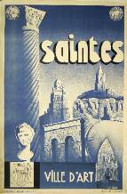 [Saintes]. Le Roy (Marcel). Saintes, Ville d’Art. Paris, Imp. A. Norgeu, 1936. Lithographie monochrome bleue (92 x 61,5 cm). Entoilée (traces superficielles de pliures, très légères salissures en marge). Bel état.
