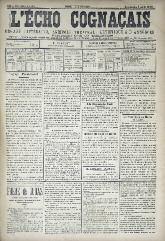 [Cognac]. L’Echo Cognaçais. Organe littéraire, agricole, théatral, artistique & d’annonces paraissant tous les dimanches. Directeur-gérant : E. Vincent. 188. 3 volumes in-plano, reliures demi-basane très usagées. 4 pp. par numéro. • n° 102