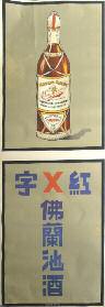 [Cognac]. Publicité. Cognac Pero-deau. Sanator. Rennes, Oberthur, s. d. Grande affiche publicitaire (160 x 60 cm) présentant dans, deux encadrements superposés, une bouteille de Sanator «Medicinal Brandy approuvé par les docteurs médecins de