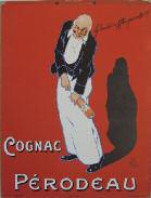 [Cognac]. Publicité. Cognac Perodeau. Paris, Cognac, imp. Pichot, s.d. Carton publicitaire (40 x 30 cm) sur fond rouge, mono-gramme A. D. non identifié en bas à droite. Le serveur débouche une bouteille de Cognac en s’exclamant : By Jove ! it’s