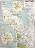 [Oleron]. Ile d’Oleron. Paris, imp. Gaillac-Monrocq, Cartographie R. Quemy, 1956. Carte en couleurs (78,5 x 56 cm à toutes marges) de l’Ile d’Oleron avec les plans de Saint-Pierre et du Château dans des cercles en haut et en bas à gauche. Bel