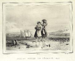 [Royan]. Galard (Gus-tave de). Jeunes Filles de Pé- cheur (sic) (Royan). Bordeaux, lith. Légé, s. d. (1829). Belle lithographie en noir (27,3 x 36,5 cm à toutes marges) avec cachet à sec G. de Galard, Album départemental Bordeaux et ses environs,