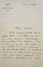 Loti. Lettre Autographe Signée adressée à Mademoiselle N[inette] Bon [sa nièce]. Rochefort, 20 novembre 1881. 2 pp. in-8, à en-tête du Cabinet du Major général, écrit recto-verso, signé Julien. Loti remercie sa nièce « Mon minet » de sa