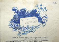 de la Mai-son des aïeules fit l’objet, de photo-graphies découpées dans des magazines, de photocopies de cartes postales… des copies de lettres (de ou par Paul Enard ?) et un croquis à l’encre bleue de Louis Ernest Lessieux représentant la tombe de Loti, l’ensemble réuni dans un classeur.