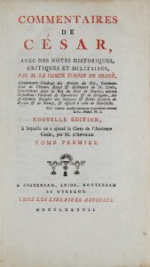 CESAR. Commentaires avec des notes historiques, critiques et militaires par le Comte Turpin de Crissé. Amsterdam, libraires associés, 1787. 3 volumes in-8, demi basane, dos lisses ornés (Reliure du XIX°).Grande carte de la Gaule et 40 plans...
