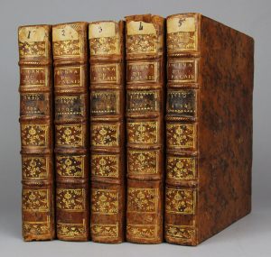 1728 et 1729). Etiquettes aux dos, petits défauts aux reliures sans gravité, sinon bon exemplaire.