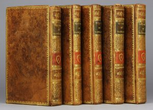 RABELAIS. Œuvres… publiés sous le titre de Faits et dits du géant Gargantua et de son fils Pantagruel. Amsterdam, Bordesius, 1711. 6 tomes reliés en 5 volumes in-12, basane racinée, dentelle dorée, tranches jaspées (Reliure de...