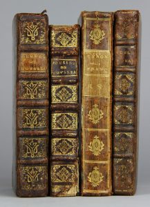 [ROUSSEAU (J.J)]. Œuvres diverses. Soleure, U. Heuberger, 1712. (2 exemplaires) – DIDEROT- D’ALEMBERT. Synonymes français. P., Favre, 1801 – LA ROCHEFOUCAULT. Sentences et maximes. P. Barbin, 1678. Ensemble 4 volumes in-12, veau de l’époque.