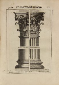édition, enrichie de nouvelles planches, revue et augmentée de plusieurs dessins, soit avec le titre, 162 planches gravées sur cuivre hors texte ou à pleine page, souvent doubles. Longtemps considéré comme le meilleur traité d'architecture, ce cours comprend les figures et les descriptions des plus beaux monuments de Vignole et de ceux de Michel Ange, les nouveaux dessins concernant la décoration, la construction, la maçonnerie, la charpenterie, la couverture, la serrurerie, la menuiserie, le jardinage et tout ce qui concerne l'Art de bastir. Reliure manipulée