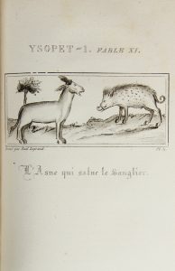 LA FONTAINE. Fables inédites des XII°, XIII°et XIV° siècles, et Fables de La Fontaine rapprochées de celles de tous les auteurs qui avoient, avant lui, traité les mêmes sujets. Paris, E. Cabin, 1825. 2 volumes in-8, demi veau vert, dos lisses...