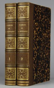 LA FONTAINE. Fables. Illustrées par Grandville. Paris, Furne et Cie, (1842-1843). 2 volumes in-8, demi chagrin havane, dos ornés (Reliure de l’époque).Quatrième édition illustrée par Grandville et ornée de 240 malicieuses figures sur bois...