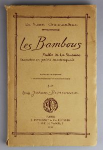 LA FONTAINE. Fables. Les bambous. Fables de la Fontaine travesties en patois martiniquais par un vieux commandeur (Fr. Marbot). Paris, Peyronnet, 1931. In-8 broché.Edition revue et corrigée avec une notice et une traduction française par L....
