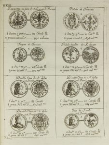 DARIER. Tableau du titre, Poids et Valeur des différentes monnoies d'or er d'argent, qui circulent dans le commerce. Avec Empreintes. Genève, chez l’auteur 1807. In-4°, demi basane (Reliure de l’époque).Titre gravé et 52 planches gravées...