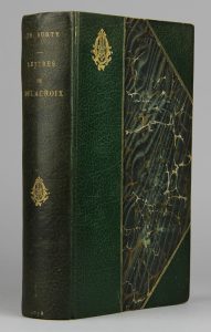 DELACROIX (E). Lettres (1815 à 1863) recueillies et publiées par Ph. Burty. Avec fac-simile de lettres et de palettes. P., Quantin, 1878. Fort in-8, demi maroquin bradel vert à coins, couv. cons., t. dorée (Reliure de l’époque).EDITION...
