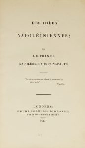 NAPOLEON-LOUIS-BONAPARTE (Prince). Des idées napoléoniennes. Londres, H. Colburn, 1839. In-8, demi basane noire, dos orné d’un N couronné (Reliure de l’époque).EDITION ORIGINALE avec un envoi manuscrit de l’auteur, futur Napoléon III, à...